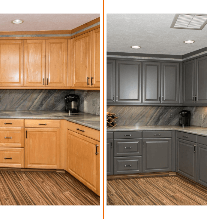 N-Hance uses a special proprietary cleaning solution to remove any dirt or oil from the cabinets. We then use water-based acrylic, polyurethane blends designed for cabinets.