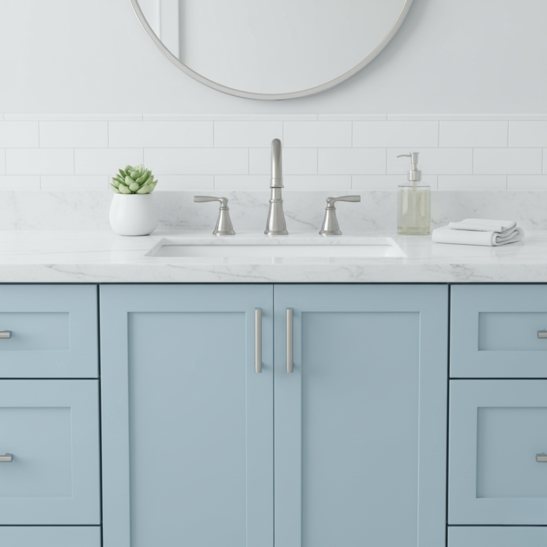 The trend is moving toward light, airy spaces, and serene pale blue is leading the charge, especially for smaller areas. If you are focused on refinishing bathroom cabinets, this color is a game-changer. It instantly elevates the room, making it feel cleaner and more spa-like. It’s a subtle touch of color that maintains broad appeal for future resale.