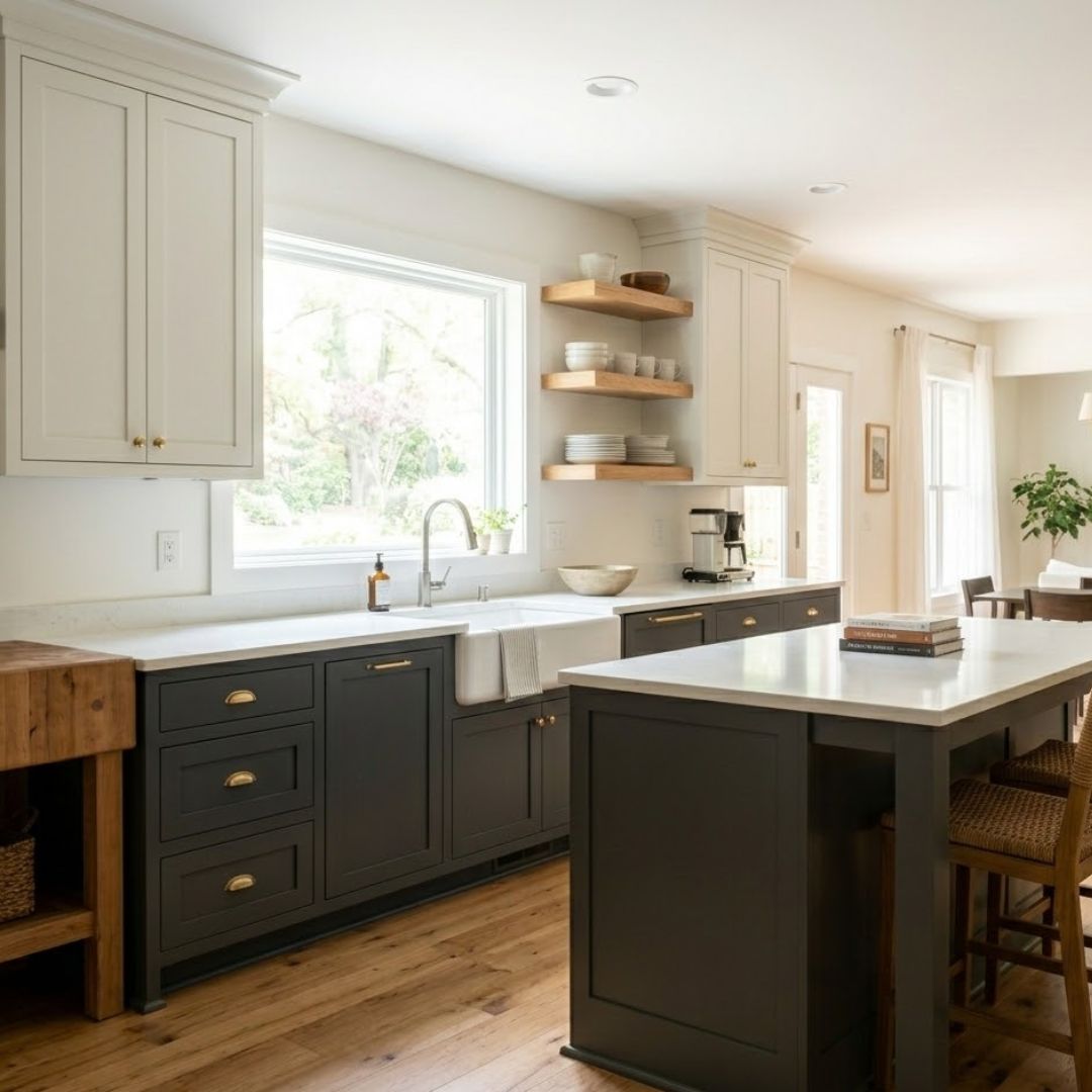 Two-tone kitchens continue to be a favorite choice because they offer incredible depth and visual interest. By pairing lighter upper cabinets with deeper tones on the base, we can make your kitchen feel larger while still incorporating rich color. This balanced approach allows for a personalized design that feels both contemporary and classic for years to come.