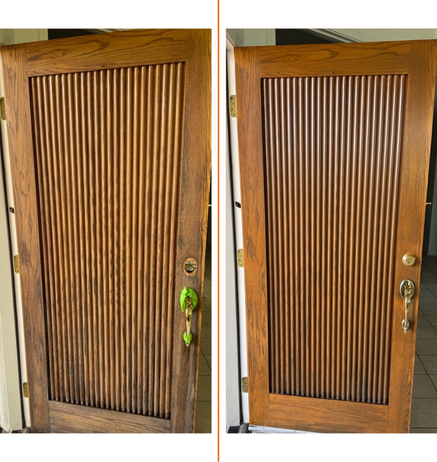 Not only does N-Hance revitalize your furniture and wood doors, but it also helps extend their lifespan. Say goodbye to faded colors, scratches, and excessive wear on the wood surface. Our process removes dirt, grease, and grime, leaving your furniture looking refreshed and renewed.