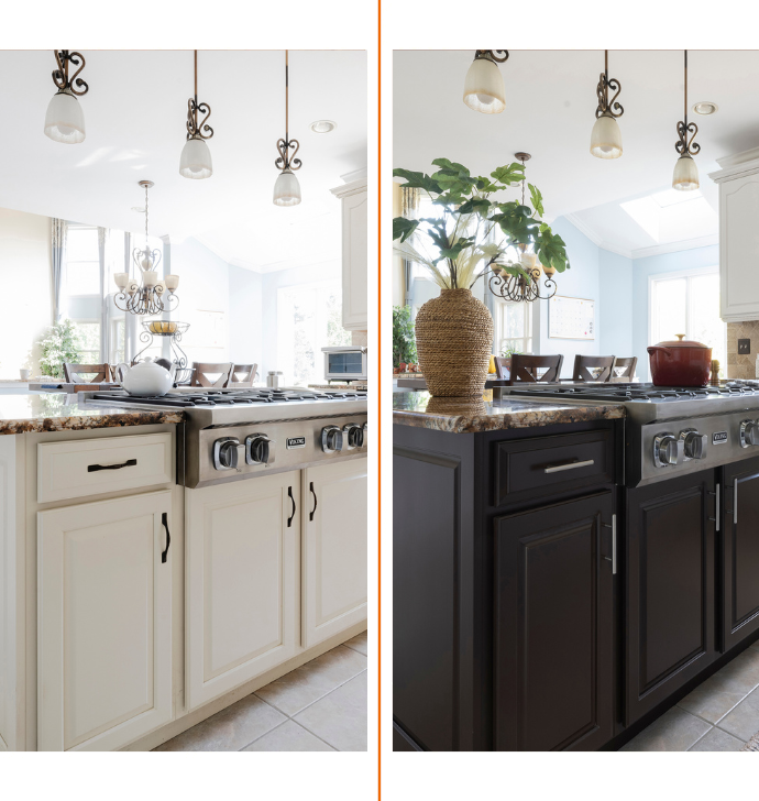 Cabinet painting from N-Hance costs a fraction of what you’d spend to replace your cabinets.
