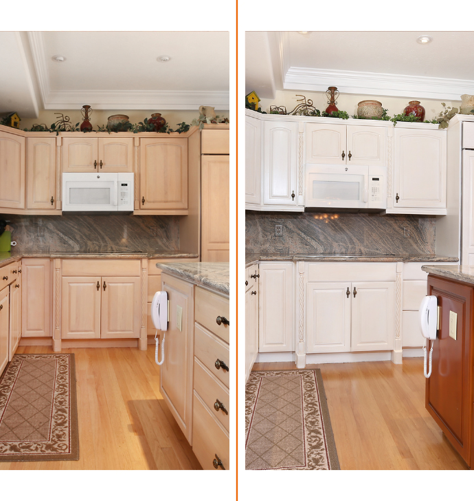 Choosing the right cabinet color can be daunting. N-Hance is here to simplify the process. We’ll consider your kitchen’s unique characteristics, such as size, style, and natural light, to help you select the perfect color. To make your decision easier, we’ll bring paint samples directly to your home, allowing you to visualize the final result. Let N-Hance guide you toward a stunning kitchen transformation.